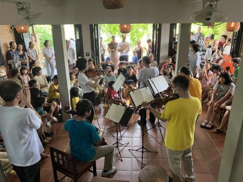September 9th was the final day. A workshop was held at U Cafe in Hoi An. The children overcame the language barrier to perform together, performing Vivaldi's "Spring."
