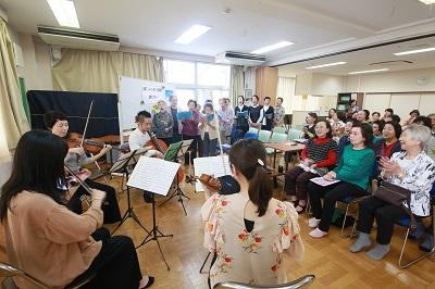 We perform in a variety of venues. We sometimes hold concerts in music halls, but most of our performances are at places close to where you live, such as schools, hospitals, nurseries, and community centers. Our band members visit these venues and create custom-made programs, mixing everything from classical masterpieces to music from anime and movies, for you to enjoy.