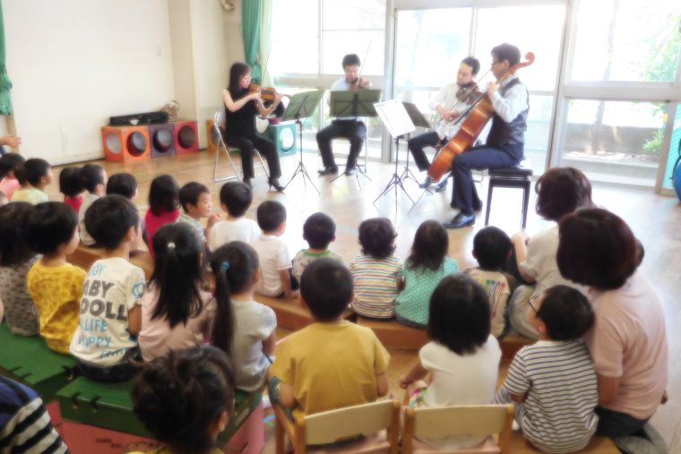 We bring live chamber music ensembles to Suginami City public elementary and junior high schools. In cooperation with the teachers, we create programs that allow children to experience the joy of music together with the musicians.
