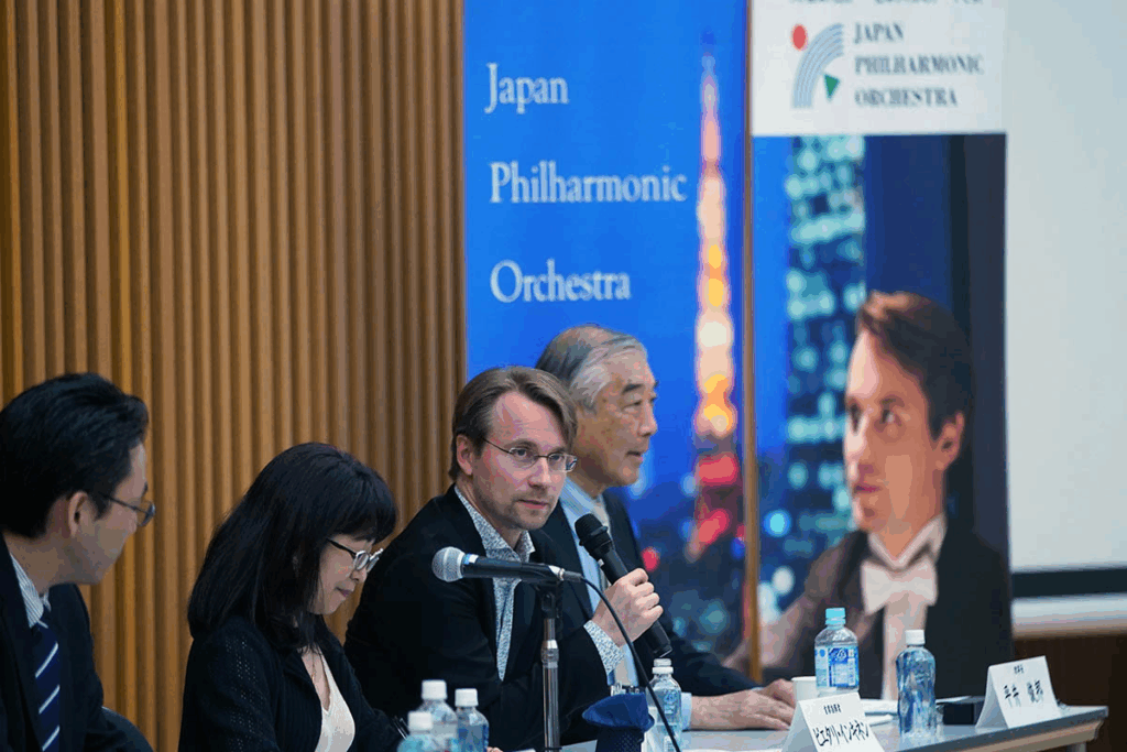 Principal Conductor Pietari Inkinen (hereinafter Inkinen):Good afternoon, everyone. Thank you all for coming today. As Chairman Hirai mentioned, it is a great honor to have all of you here today, thanks to your ongoing support. First and foremost, I would like to express my sincere gratitude to all the corporations and individuals who have provided such generous support in making this European tour a reality. I would also like to personally convey the same gratitude to Mr. Hirai. Without his efforts, this tour would not have been possible.